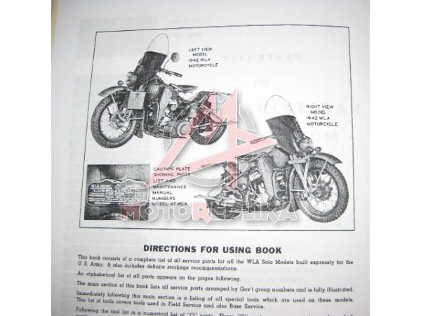 Harley Davidson WLA Solo Каталог деталей на английском языке, 1942г