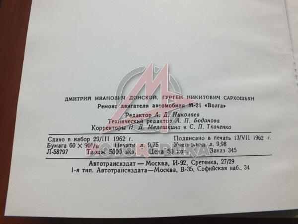 Ремонт двигателя автомобиля М-21 Волга, 1962г., 156 стр, формат А5.